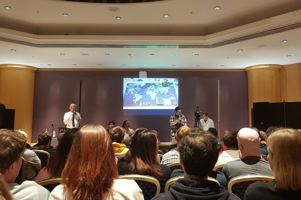 First off, I made sure to check out Pandemic Live (by James Cook and special guests!). This was an easy choice; Pandemic was my first game and is still a firm favourite to this day (read more in my Pandemic Review). The show was exactly what it says on the tin: 4 people (one being ‘the audience’) play a live game of Pandemic, and there are some surprises along the way! It was very entertaining, with some fun facts and random game-related humour.
