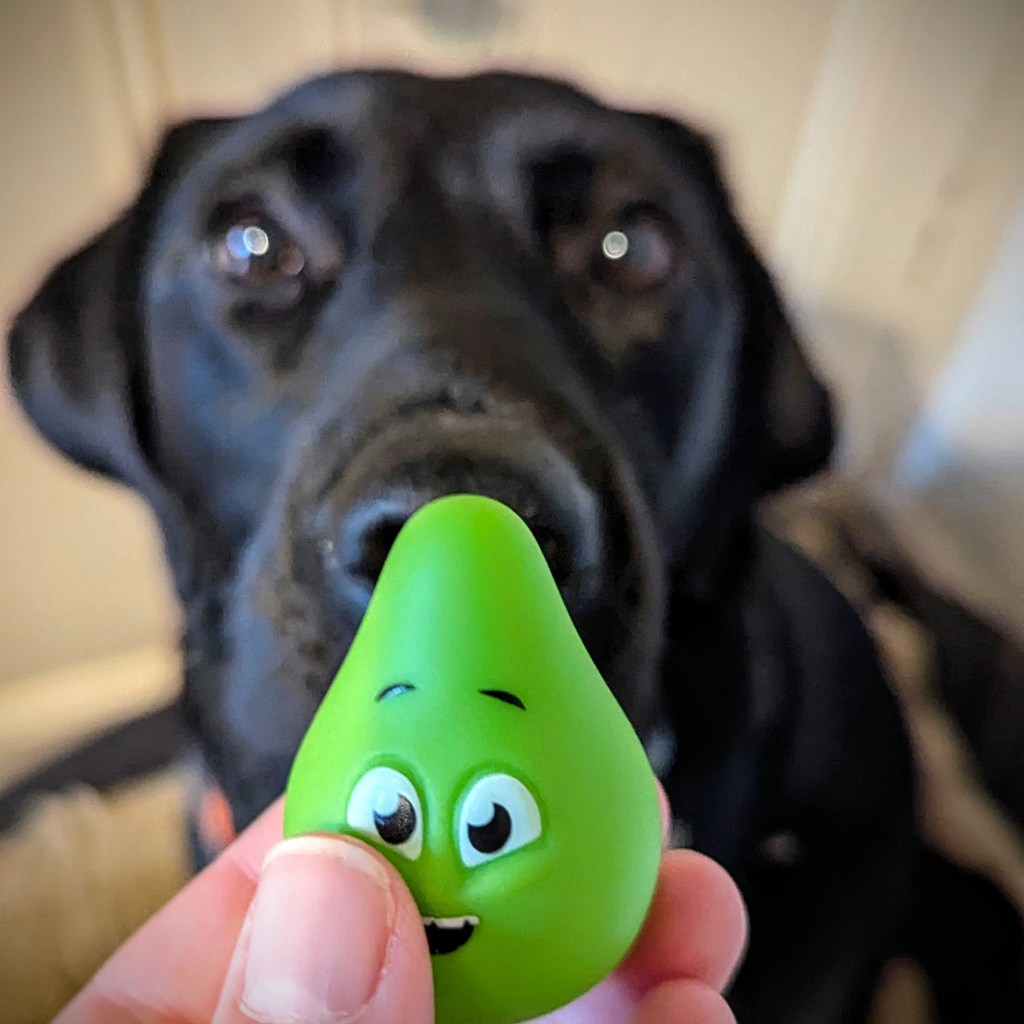- The squishy pears squeak when squeezed, and the sound is very akin to a dog’s squeaky toy. Our lab was very interested in it – dog owners be warned!