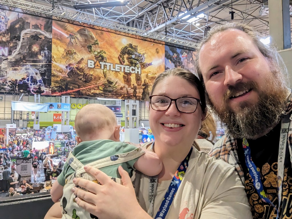Last year we went to the UK Games Expo (UKGE) with our 7 month old baby. We’ve been to UKGE many times before, but we were still nervous about how it was going to go with a baby in tow…and of course we didn’t have anything to worry about!