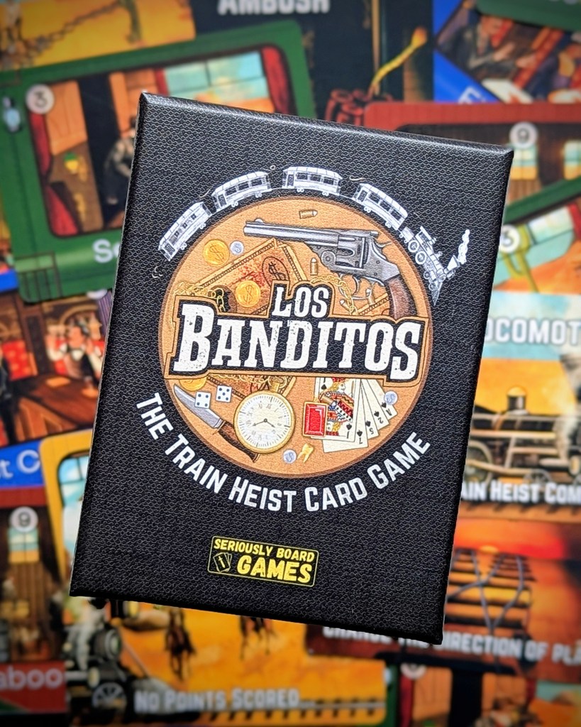 Each player is a train-heisting gang in the Old Wild West, building communal trains from rear to front, while also trying to be the person to complete said train and claim its points. Over 5 rounds, players draw and play various cards until 4 trains are ‘completed’ and the round ends. Whoever has the most points at the end wins!