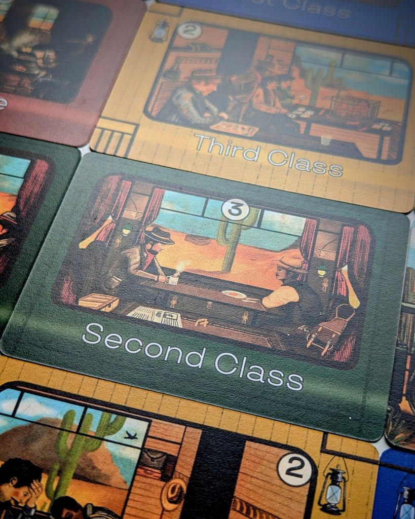 Although we were excited about the train building, in our games we seemed to always end up in the same situation: left with an open carriage that neither of us wanted to close until we knew for sure we could complete the carriage and the train in the same turn (i.e. having the right class end carriage plus Locomotive in hand, or just an Escape Car). Because if you end your turn with a closed carriage, your opponent is more likely to be able to complete it and claim the points before your next turn (i.e. they’d only need a Locomotive or Escape car). We did also prefer to cap our games to 3 rounds than play a full 5; for us this felt the right balance for this type of light, luck-based card game.