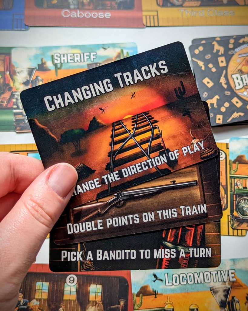 - Complete a train with a Locomotive card, Escape Car card, or Sheriff card.