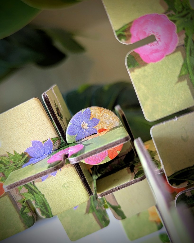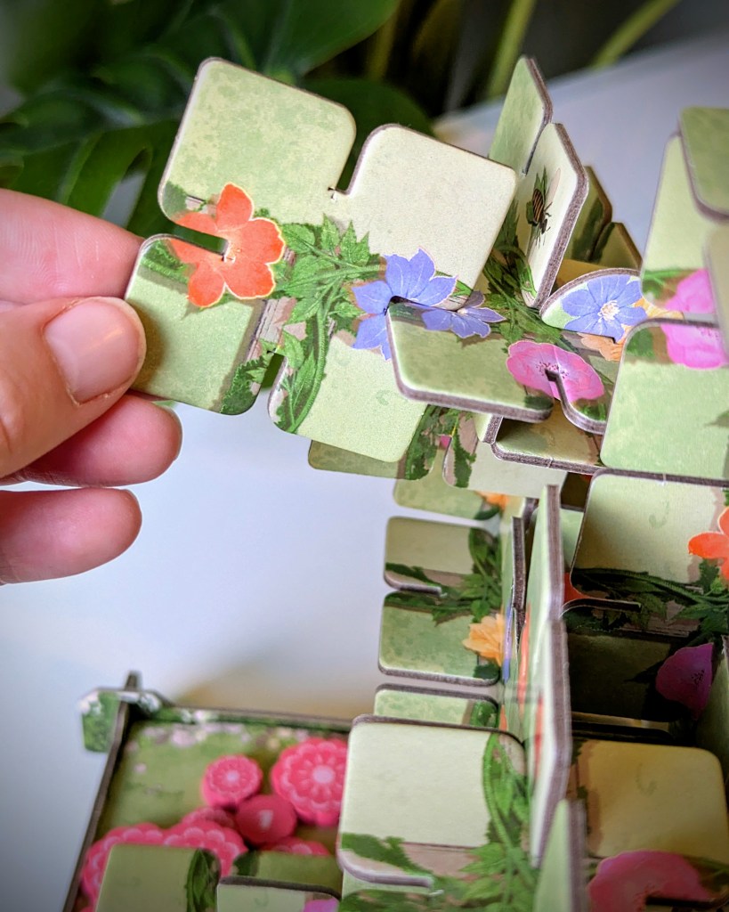 - For a prototype, the components are lovely. The tiles slide together easily but firmly – there’s no concern about the pergola falling apart. The wooden petal tokens (included in the deluxe addition or available as an add-on) feel good quality. I also like that each petal colour type has a different design as an additional way to tell them apart.