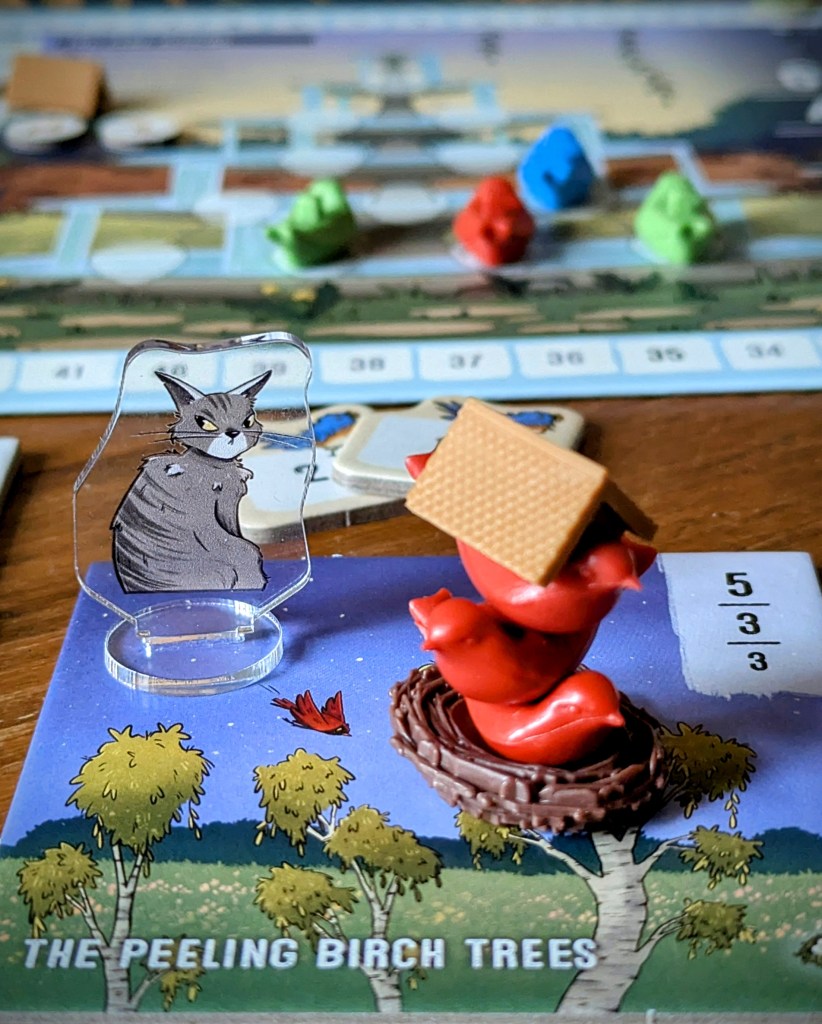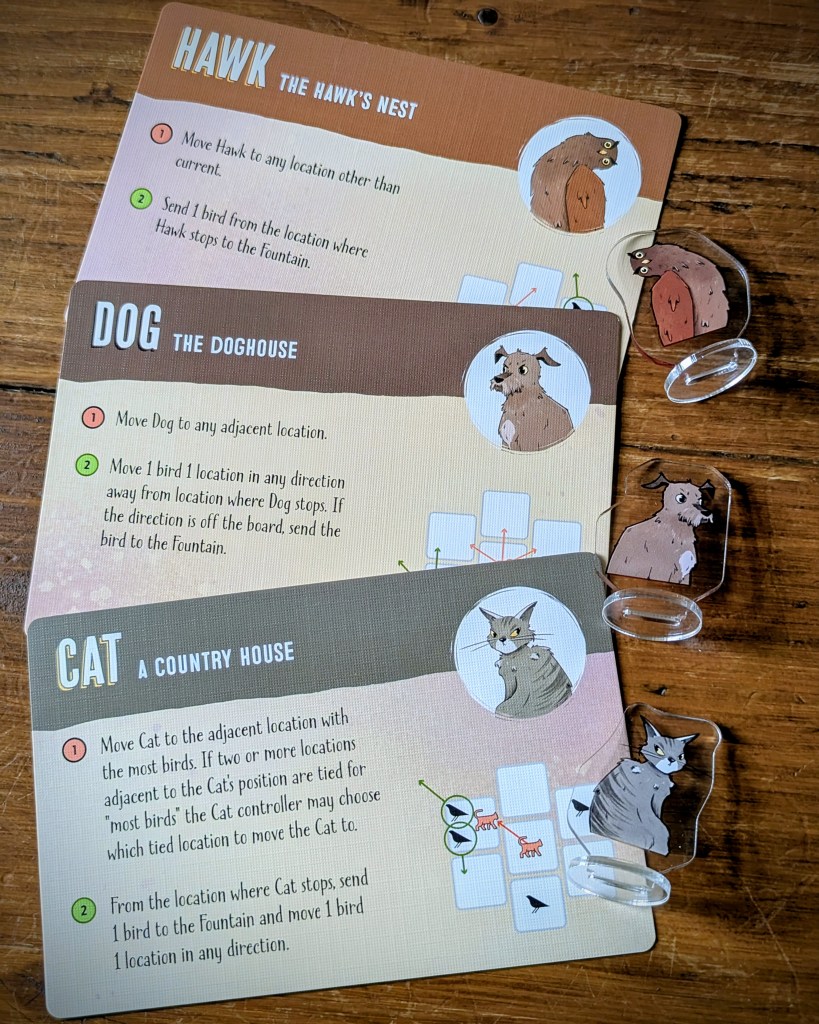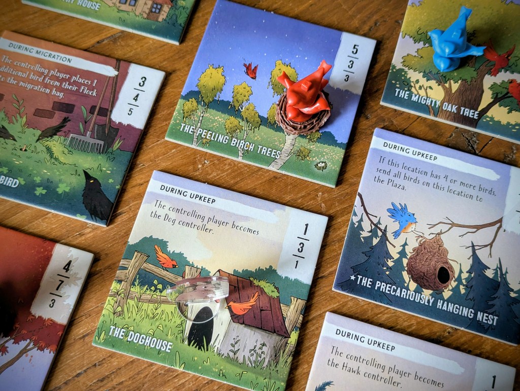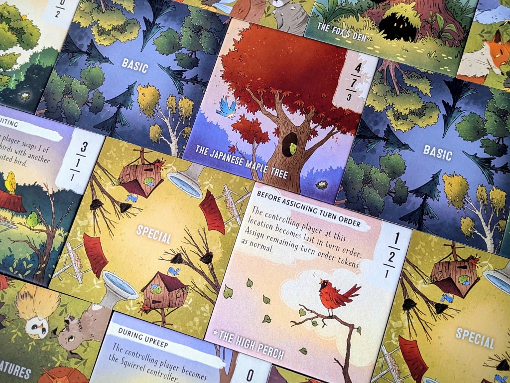 Players lucky enough to gain control of creature locations can use the corresponding creature in the next round. Each one has a slightly different ability, but they usually involve moving locations and forcing birds to relocate – or even banishing them to a central fountain board.