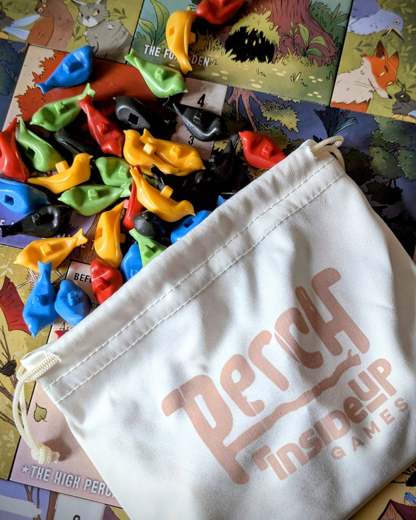 In Perch, players place birds – their own and their opponents – to form flocks and claim control of various perchable locations to earn points, exploit special powers and control creatures.