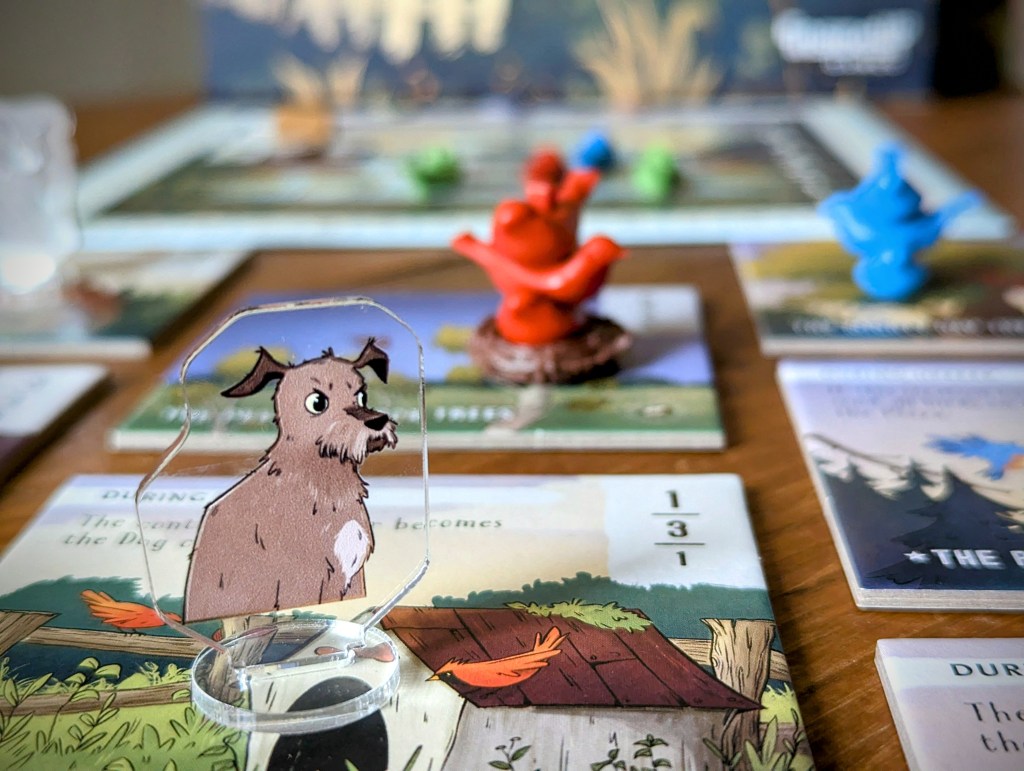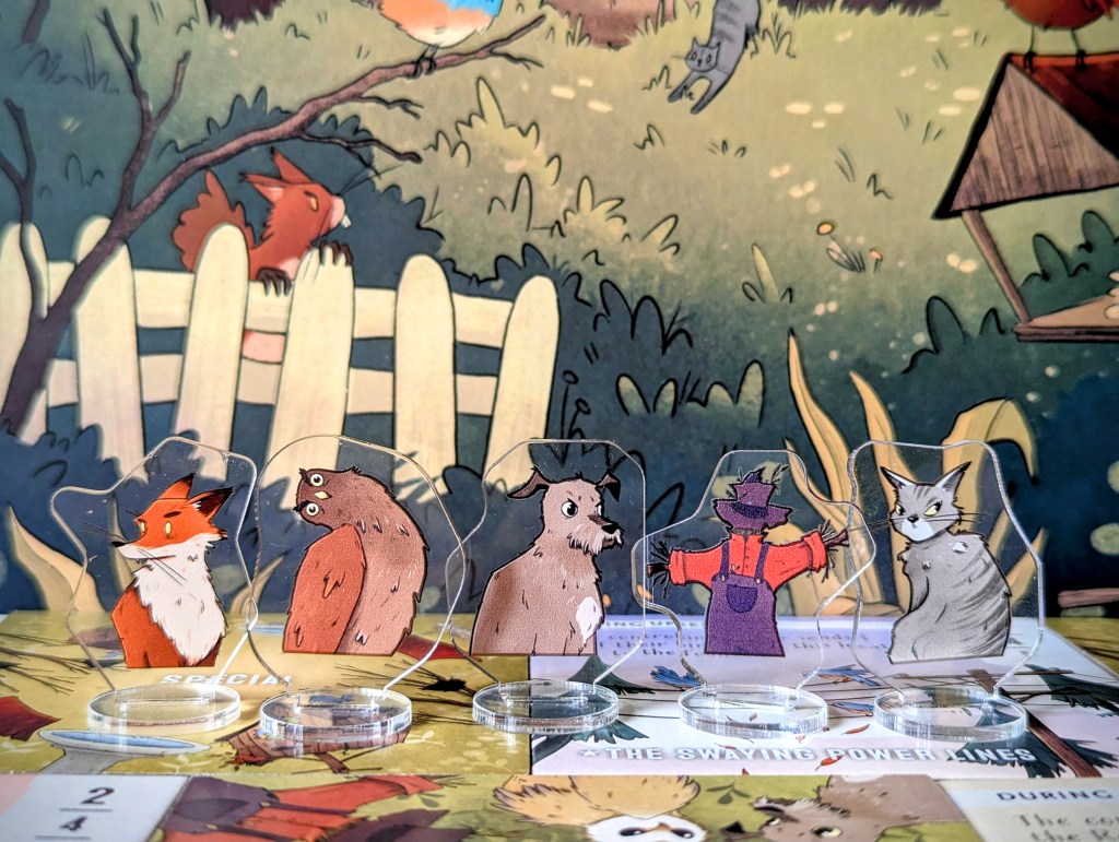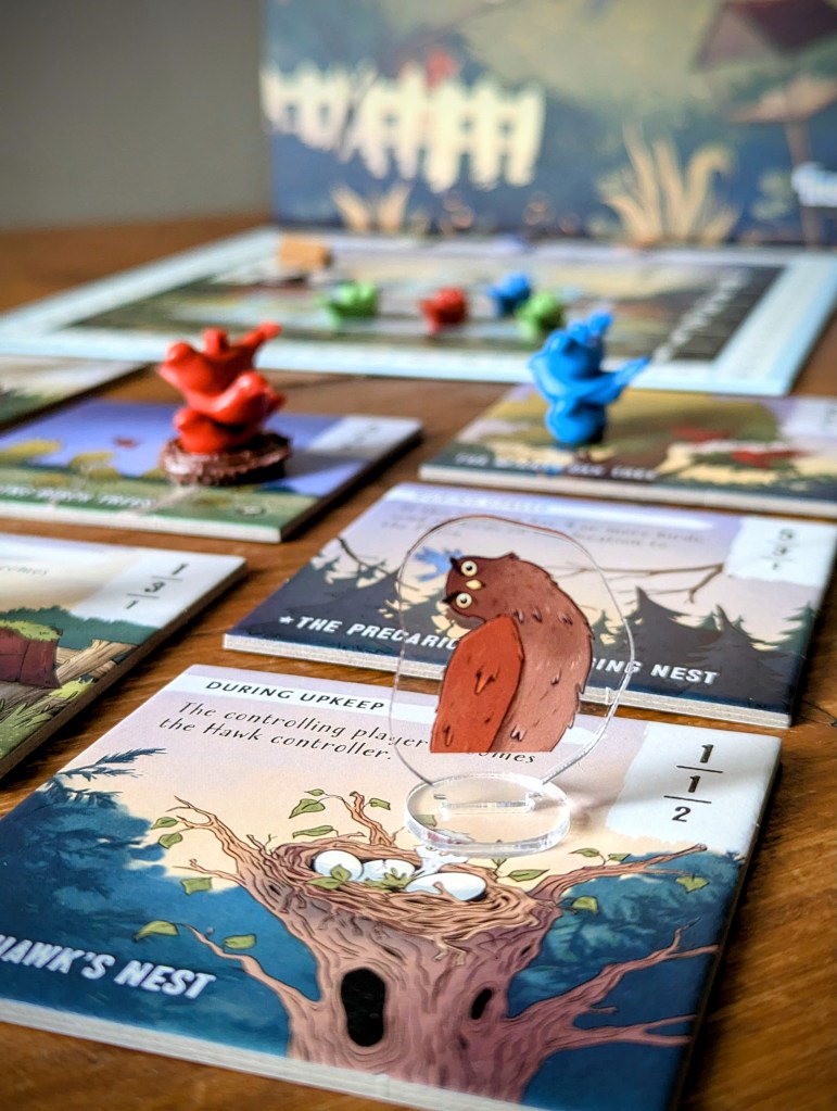 Honestly there’s so much I love about Perch! And I have very few niggles, but they are mainly to do with the components. I noticed that a couple of the birds weren’t formed properly (missing beaks). The creature standees acrylic standees look super cool but inserting them into the bases is tricky. The tolerance across the bases/standees were inconsistent, and we did end up breaking a base. As there’s only a few bases included in the box there’s an obvious expectation to swap bases depending on the creatures in play, which means more chances to break. We would have preferred enough bases for each creature, plus a couple of spares.