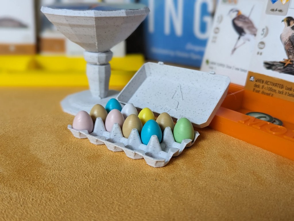 With the rise of 3D printing, board game accessories have become more easily available and more affordable. And there’s something for everyone! Like these cute Wingspan egg boxes from my talented friend Amy at 3DamnGood on Etsy (who you may know as @itsyourturn.bg on Instagram). Or if you’re not sure what specific games they own, go for something more generic. Horror game fans would love these card holders!