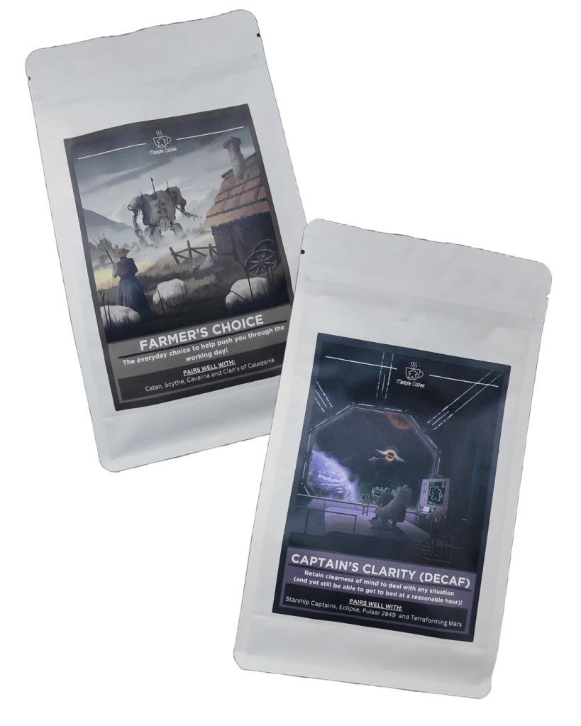 Meeple Coffee has a themed selection of loose leaf teas and coffees, including a decaf, that even come with fun board game ‘pairing’ suggestions! You can select the grind (wholebean, cafetiere, etc), and they also sell some coffee accessories if you want to make a bundle.