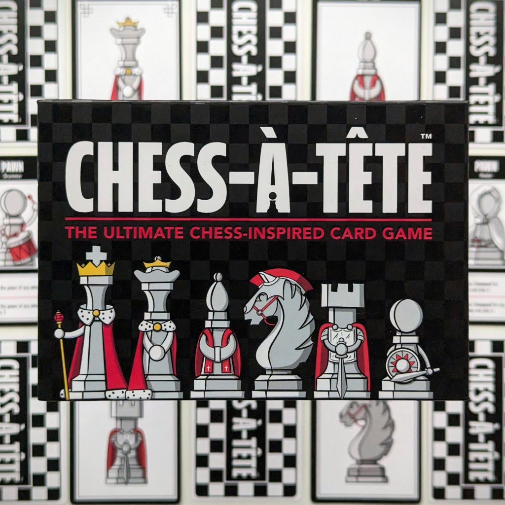 Inspired by another classic game, Chess-à-Tête is a 2-player card battle based on chess (obviously!). Play chess pieces, actions and combat cards and try to take out your opponent’s King – before they get yours! This is a really fun application of a chess theme using terminology from the game, like how a combat card named after a specific gambit requires the same chess pieces that you’d use if you were playing the actual gambit during chess.