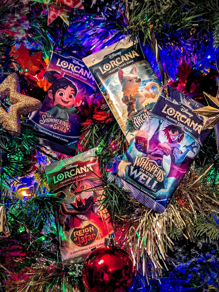 And the easiest, most budget friendly gift for a Disney Lorcana fan’s stocking – collector or player – are BOOSTER PACKS. Often available at local game stores, toy shops and even sometimes supermarkets. Each individual pack has 12 Lorcana cards, including a mix of common and rare cards, as well as one ‘shiny’. Buy one, buy three, if you really love them buy a whole box!
