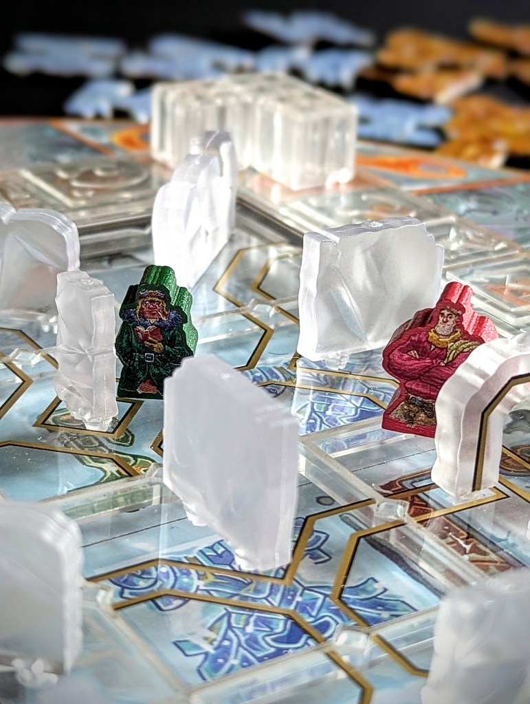 With a fun pick-up-and-deliver theme, cool art, tactile mechanics and an impressive table presence, Ice and Idols is sure to be a winner at game nights. Particularly for fans of player interaction – we played at 2 and I can only imagine how chaotic it can get with more players and more temple shenanigans! I just wish the tiles in the game box were stored more securely.