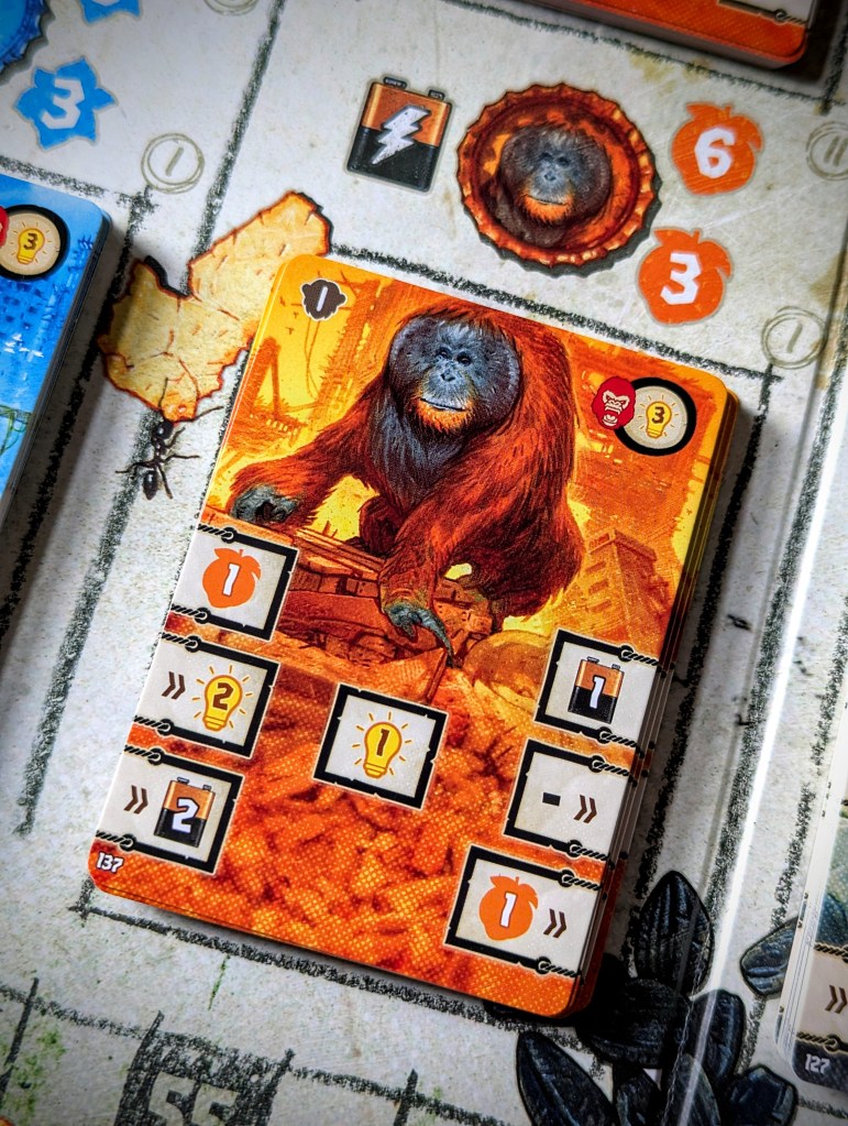 There’s 7 human object tiles in the box, so with only 3 selected each game, their in-game abilities are the main source of variation from game to game. Each does something different and the ones you have available can really influence your strategy. For example, if there’s a useful object that costs a lot of batteries to use, you might prioritise recruiting orangutans as much as possible (as they give more batteries than other apes). And releasing more of these object tiles as part of an expansion would be a no-brainer to add more variety in future.