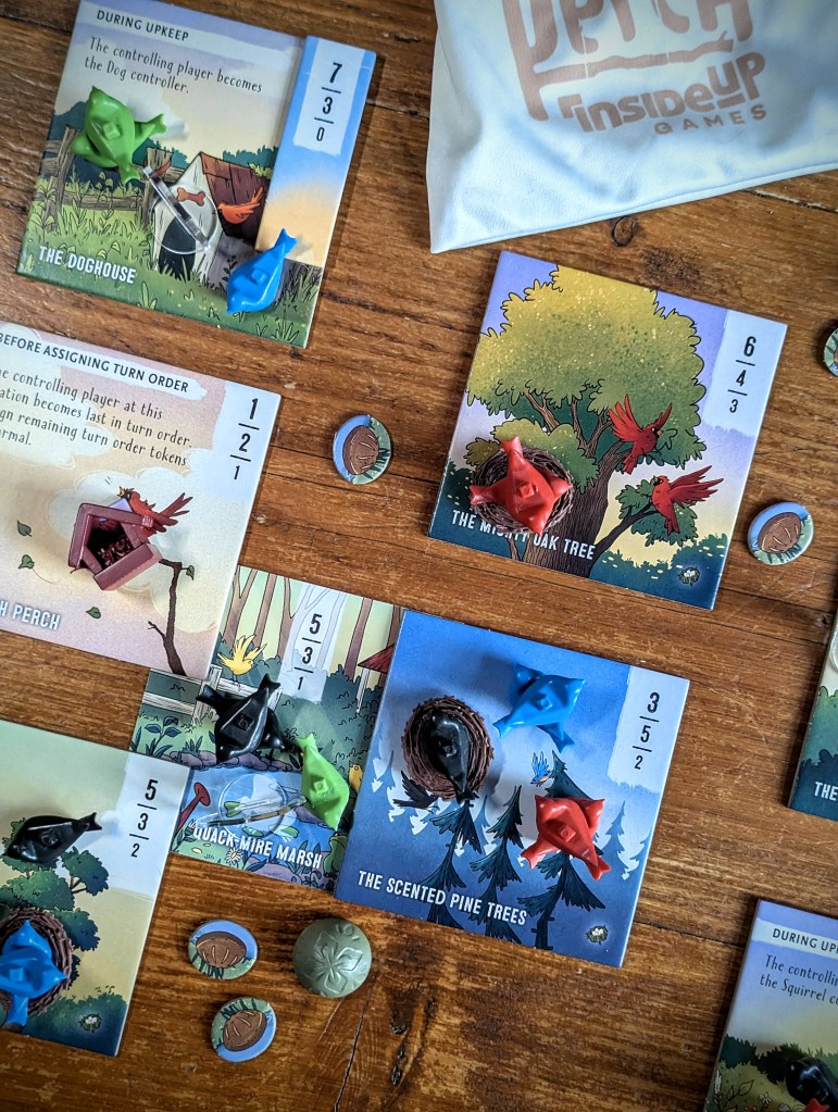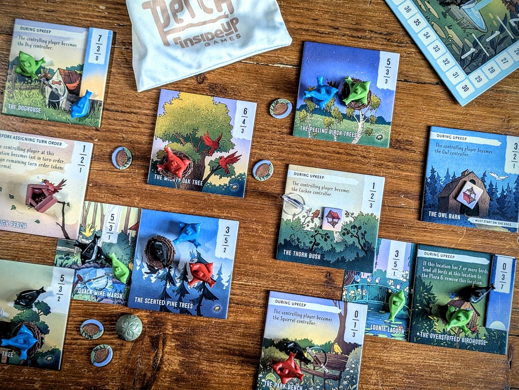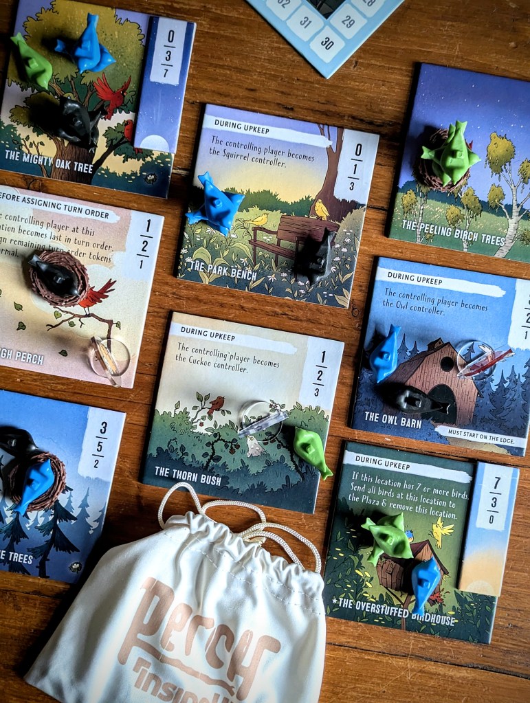 I like that they are mini-modular expansions that you can pick and choose from to cater to different groups. And they even combine well into one game – there’s a lot more going on so I wouldn’t do this with newer players, but as proficient perchers we didn’t feel overwhelmed with the added gameplay.