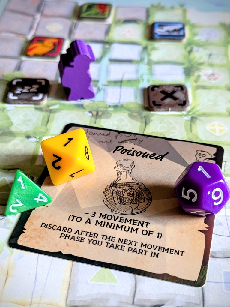- Interesting dice-exhaustion movement mechanic (although I didn’t find it overly limited my decisions).