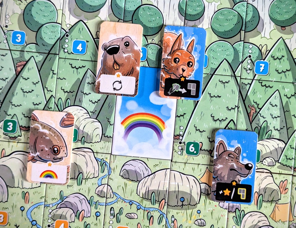 - Spirits with a blue background have an end game effect, usually related to scoring. The wolf gives you 1 point for each separate panorama section you have built, whereas the lizard gives you a point for each Rainbow in your panorama.
